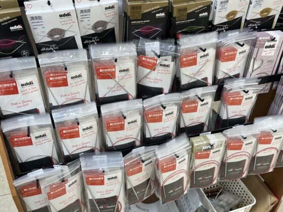 一目見てリブ編みソックスを編みたいと思ったのですが、わたしは5本針がとても下手なので、addiクレイジートリオを一緒に購入してみました。