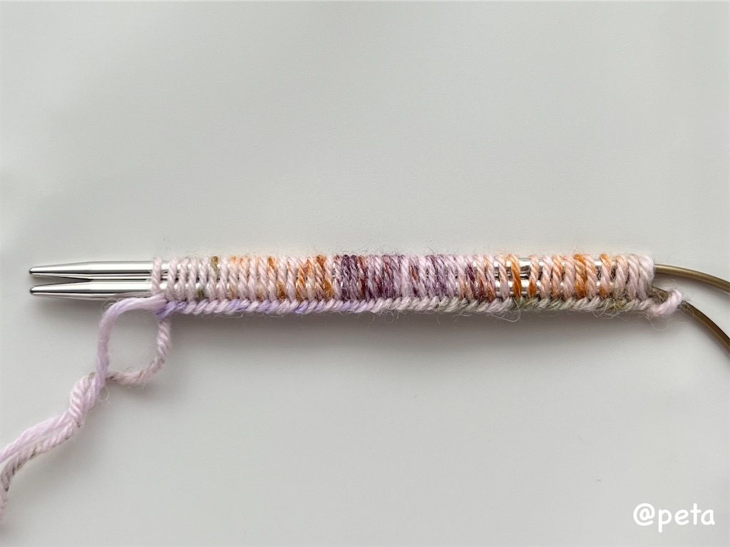手編みの先生曰く、5本針に比べて針の持ち替えが少なく済み、境目の緩みを少し抑えられるようです。
