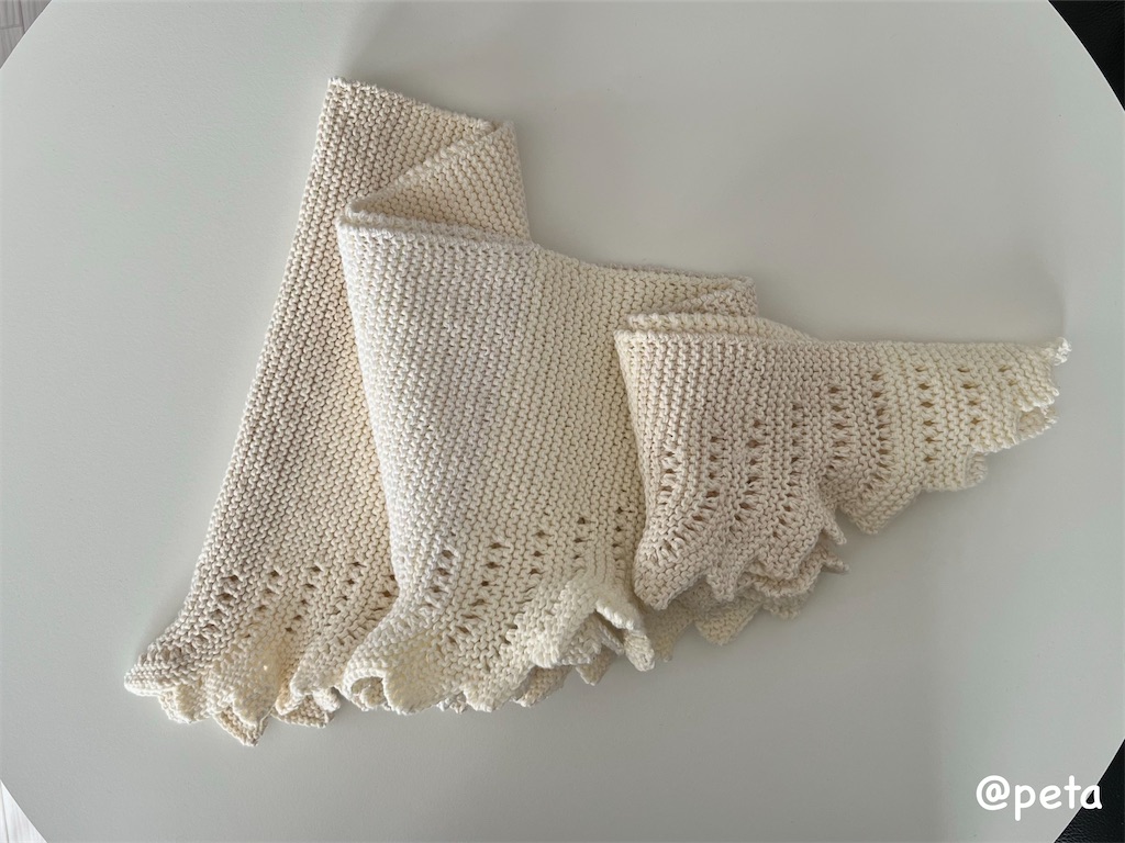 余り糸を使ったり、色を変えたり、何枚も編んでいきたいです。