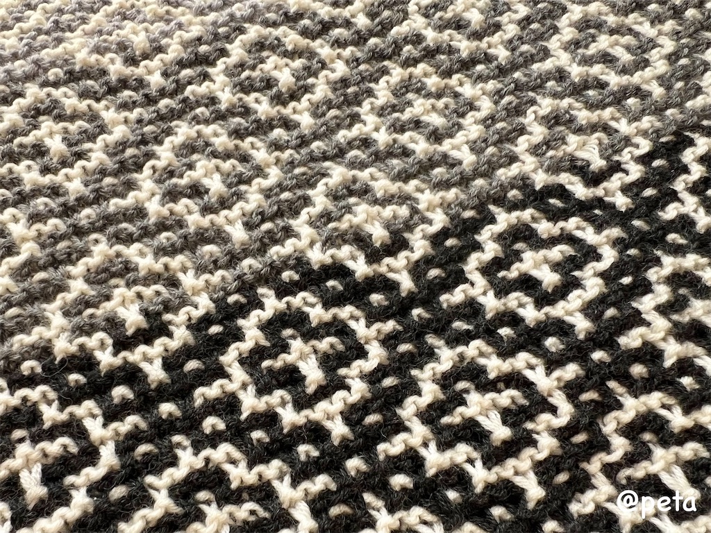 思いの外かわいい仕上がりになったので、兼用にしようかな、来季自分用に三角ショールを編もうかなとイメージしています。